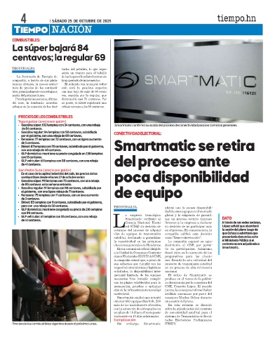 • Gasolina súper: 102 lempiras con 34 centavos, con una rebaja Smartmatic confirmó su salida del proceso de conectividad para los comicios generales.