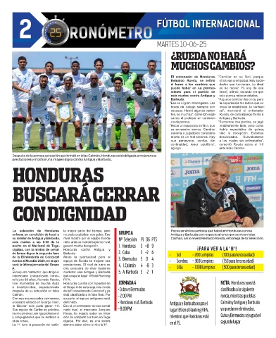 de forma digna la segunda fase Barbuda 2. Cuba 3 +2 6 • Sol – 200 Lempiras (100 para tercera edad)