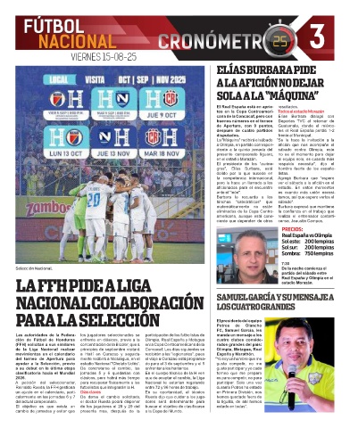 ayudar a la Selección, previo estadio Nacional "Chelato Uclés". do para el 3 de septiembre y el 5 gusta competir, no me