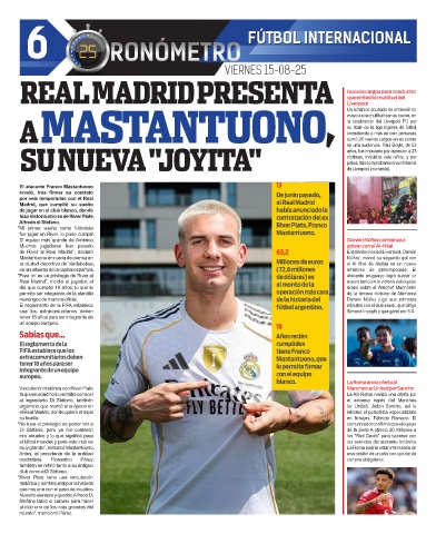 muy grande", remarcó Mastantuono. La Roma podría estar interesada en