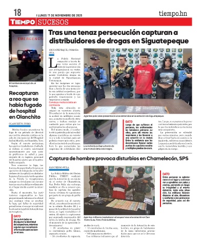 OLANCHITO, YORO. contravía para evitar que los Luego de que sufrieron el cución motorizadas policiales, por