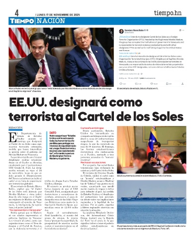 Marco Rubio reiteró que el grupo narco “está liderado por Nicolás Maduro y otros individuos de alto rango El secretario de estado, Marco Rubio en X.