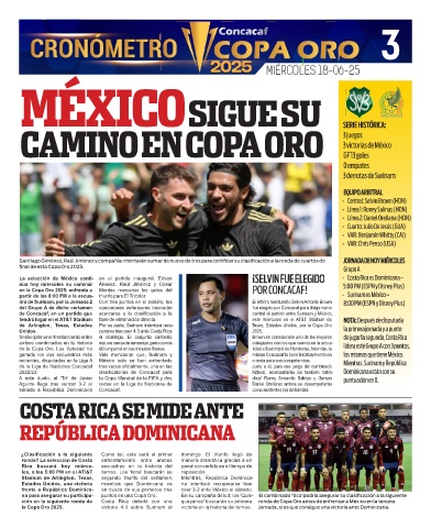 La selección de México conti- en el partido inaugural. Edson ¡SELVIN FUE ELEGIDO • Costa Rica vs Dominicana –