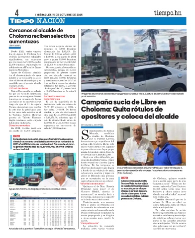 Tiempo denunciara que gozaba 38,391.69 lempiras en 2022, y Choloma: Quita rótulos de