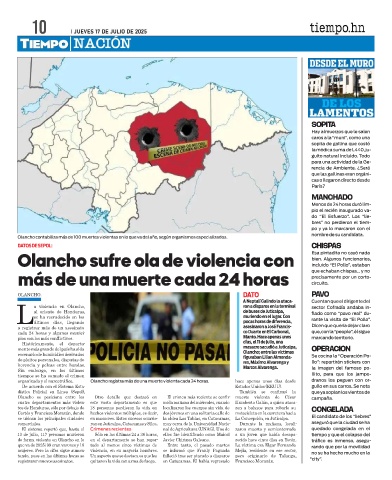 mento más grande del país ha sido Olancho; entre las víctimas OPERACIÓN
