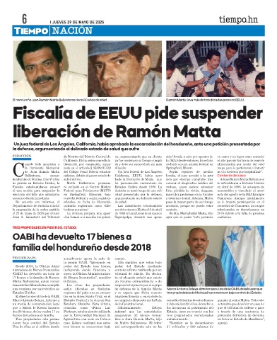 necen bajo control del Estado. mas. Zelaya confirmó que estos de Matta Ballesteros. El tribu- “También se le decomisaron agregó.