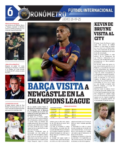 así lo anunció el miércoles el club. en Champions ante el Newcast- • Club Brujas vs AS Mónaco 10:45 a. m.