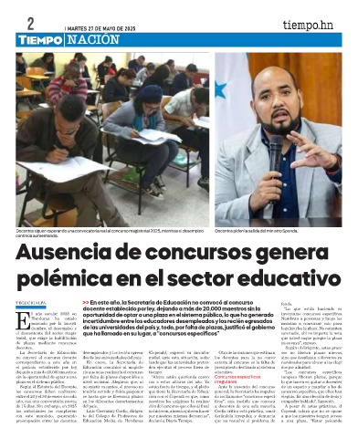 preocupación entre los docentes Educación Media de Honduras declaró a Diario Tiempo. que no resuelve el problema de a una plaza. “Estar peleando