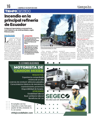 res. La estatal Petroecuador, que oil, que se ha incendiado. Está seguridad y facilitar la circulación mente asegurado en todo el país"