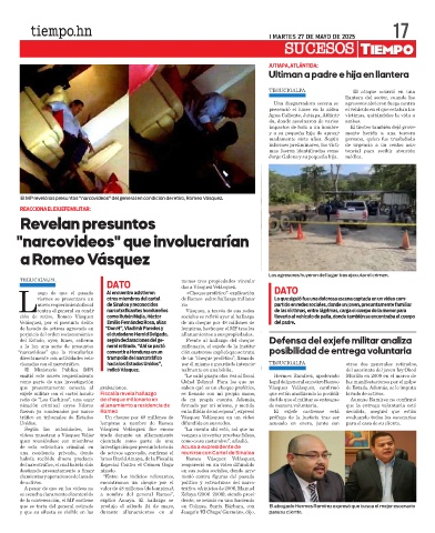 Lcontra el general en condi- narcotraficantes hondureños Vásquez, a través de sus redes de las víctimas, entre lágrimas, carga el cuerpo de la menor para