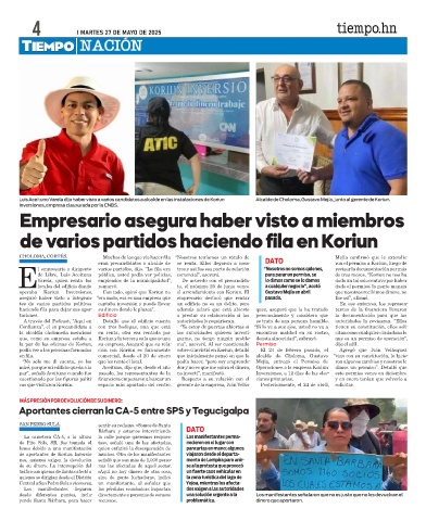Luis Aceituno Varela dijo haber visto a varios candidatos a alcalde en las instalaciones de Koriun Alcalde de Choloma, Gustavo Mejía, junto al gerente de Koriun.
