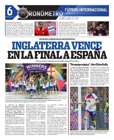 Femenil consecutiva al batir a de golpes. Inglaterra lucía sus cuali- La número 18, héroe de la final