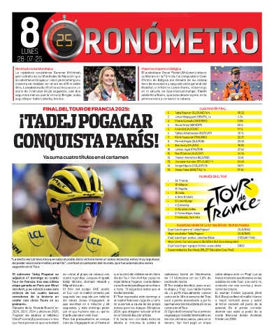 FINAL DEL TOUR DE FRANCIA 2025: 1. Tadej Pogacar (SLO/UAD) 76 h 00:32.