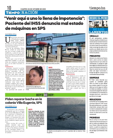 dos y no los están haciendo», se El Instituto Hondureño de Seguridad Social (IHSS) de SPS. vimentando un pasaje en lugar
