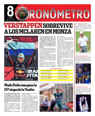 de los McLaren del inglés Lando de la temporada, el neerlandés suma