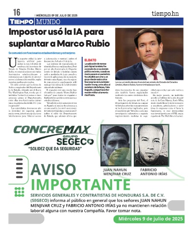Un cable enviado por la oficina de zada por miembros de la Administra- tración Trump, entre ellos el Unidos, Marco Rubio, fueron imitadas por la IA.