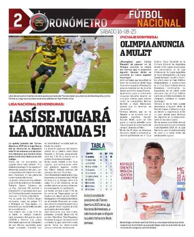 Olancho FC en un duelo en el que La fecha cerrará a las 7:30 de
