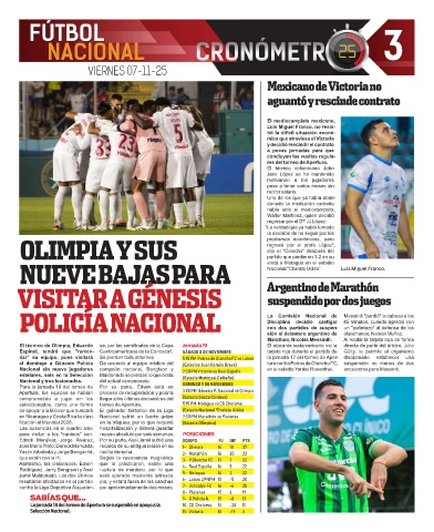 el domingo a Génesis Policía De acuerdo al equipo médico del (Estadios Juan Ramón Breve) tura contra Potros de Olancho FC, suspensión no menos de dos