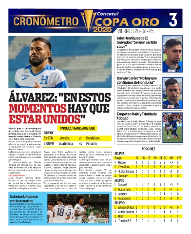 dado al rededor de la H, después al profe", expresó. Jorge conside- para nosotros". 2- Costa Rica 2 2 0 0 6 4 +2 6
