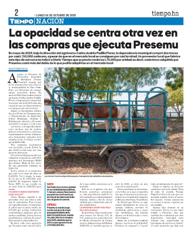 por Presemu costó más del doble L207,968,369.80). (ONCAE), se inscribió apenas en “boletines de compras” y “consul- Un salto meteórico que deja más