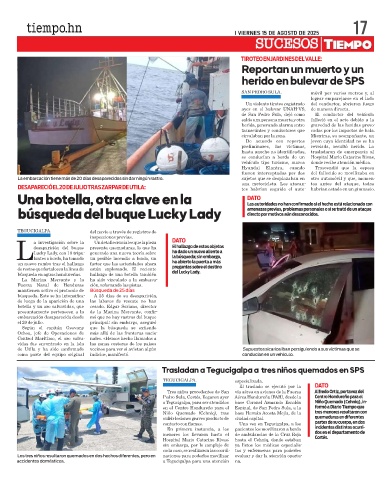 DESAPARECIÓ EL 20 DE JULIO TRAS ZARPAR DE UTILA: tes habrían seguido el auto- habrían estado en un gimnasio.