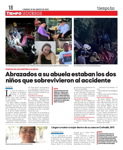 cuando los sacaron, ella ya había rola cuando ocurrió la tragedia. Las autoridades identificaron conductor. El carro chocó con dos