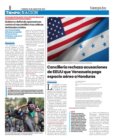 Defensa enfatiza en el docu- territorio hondureño en un área Cancillería rechaza acusaciones