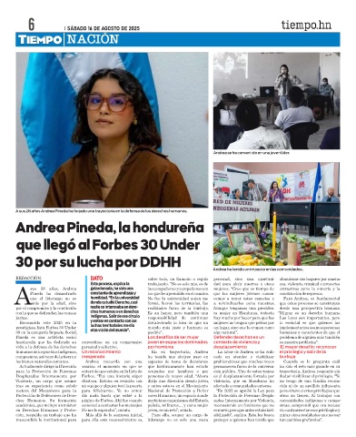 A sus 28 años Andrea Pineda ha forjado una trayectoria en la defensa de los derechos humanos.