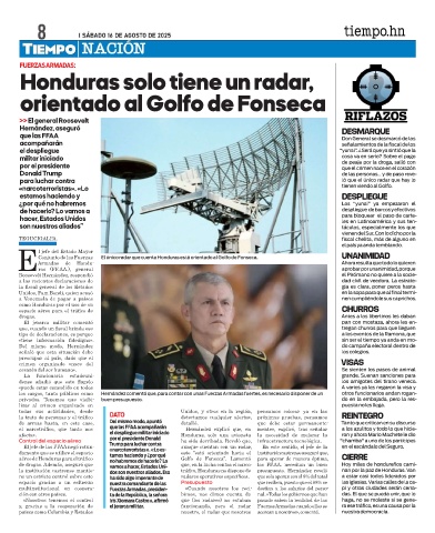 la institución castrense mantie- dos son nuestros aliados. Eso tráfico, Honduras no dispone de presupuesto. Hernández reveló nan por la paz de Honduras. Van