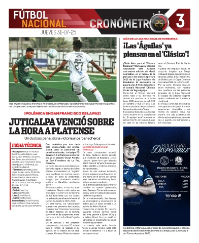 FICHA TÉCNICA Con polémica por una deci- el domingo 3 de agosto a Victoria.