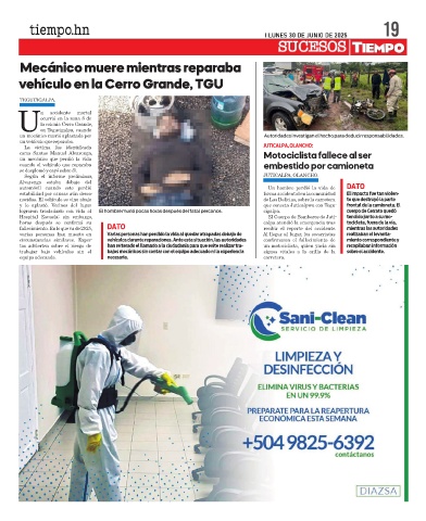 circunstancias similares. Exper- vehículos durante reparaciones. Ante esta situación, las autoridades confirmaron el fallecimiento de miento correspondiente y