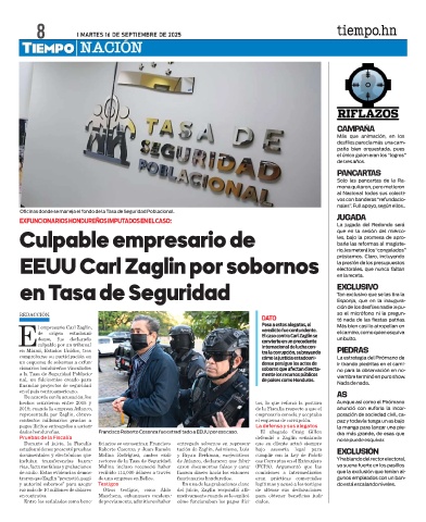 traron que Zaglin “prometió, pagó de una empresa en Belice. funcionarios hondureños. eran prácticas comerciales gunos empleados con un ban-