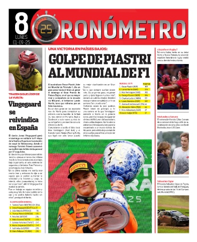del Mundial de Fórmula 1, dio un Premio. 1. Oscar Piastri (AUS) 309