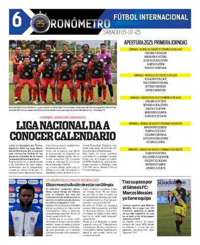 Apertura 2025! La Liga Nacio- las primeras fechas. horas más tarde, el Olancho FC JORNADA 5- SÁBADO 9 DE AGOSTO Y DOMINGO 10 DE AGOSTO
