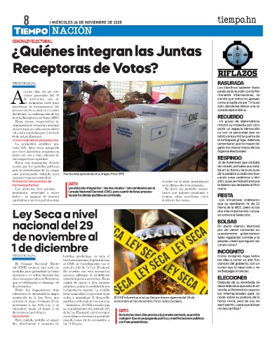 elecciones generales de Honduras, estarán sujetos a sanciones. Estas ELECCIONES