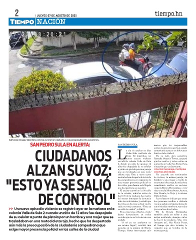 colonia Valle de Sula 2 cuando un niño de 12 años fue despojado Tras conocerse el hecho, ciuda- “En la Rivera Hernández