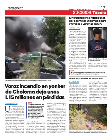 de Choloma deja unos en Sulaco, Yoro, en un hecho versiones extraoficiales los