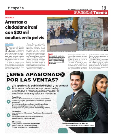 las últimas horas sobre la captura Choluteca. Fue en ese momento El extranjero tenía establecido un itinerario de viaje.