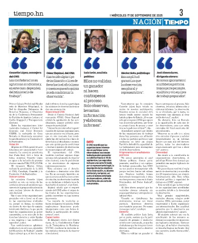 Primer Colegio Profesional Hondu- dad civil tiene derecho a participar, Solo observan, “Lamentamos que la consejera hacen contrapesos al proceso. Solo