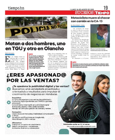 TEGUCIGALPA. galpa, al ser asesinado a tiros un muerte inmediata, quedando conducía a exceso de velocidad