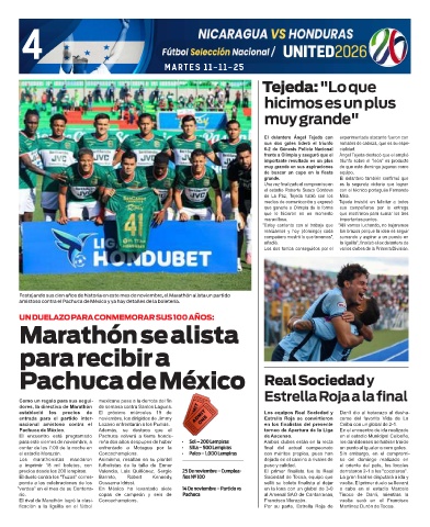 El encuentro está programado Pachuca volverá a tierra hondu- de Ascenso. en el estadio Municipal Ceibeño,