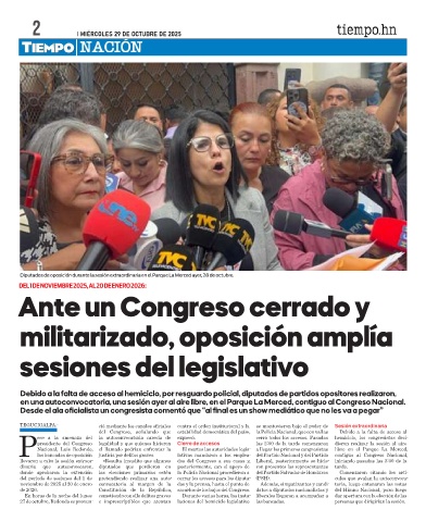 Plas bancadas de oposición justicia por delitos graves. lativas mandaron a los emplea- del Partido Nacional y del Partido contiguo al Congreso Nacional,