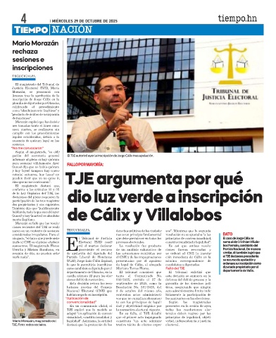 gación del secretario general El TJE autorizó ayer la inscripción de Jorge Cálix tras apelación.