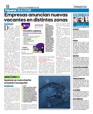 dor de Operaciones para plaza en San Pedro Sula, además debe arreglos con globos. La empresa cumbre.com que siempre sí… pero por partes. Ya