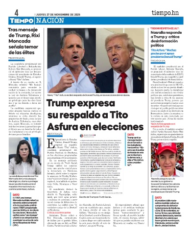 la Ley de Justicia Tributaria y Nasry “Tito” Asfura recibió respaldo de Donald Trump, en las elecciones de Honduras. políticos que, sabiéndose perdedores,
