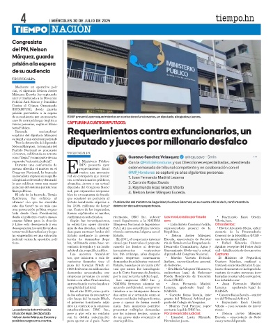 de su audiencia por un presunto El MP presentó ayer requerimientos en contra de exfuncionarios, un diputado, abogados y jueces.