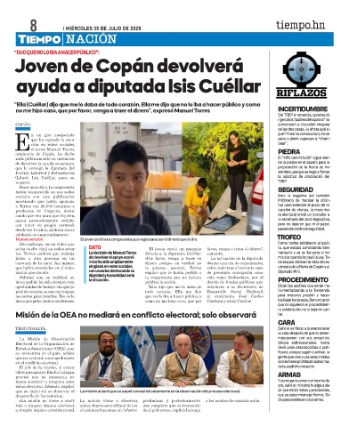 inicial que circuló. dignidad y honestidad ante explicó que le había pedido a de presunta corrupción cono- diputado Mini.
