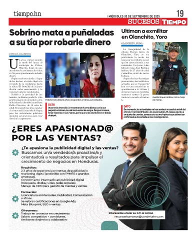 a su tía por robarle dinero OLANCHITO, YORO.-