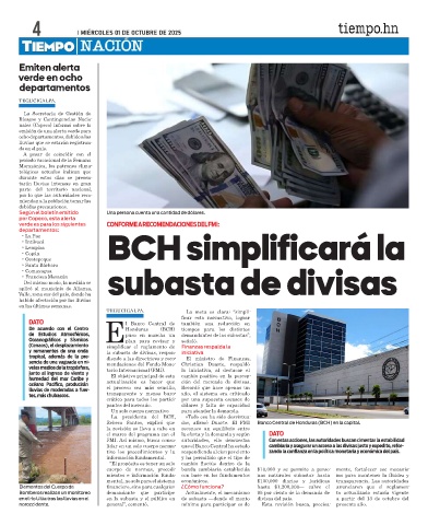 Rebeca Santos, explicó que do», afirmó Duarte. El FMI Banco Central de Honduras (BCH) en la capital.