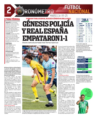 • Línea 1: Wálter López El nuevo Génesis Policía del luso Mira, 2025 de la Liga Nacional